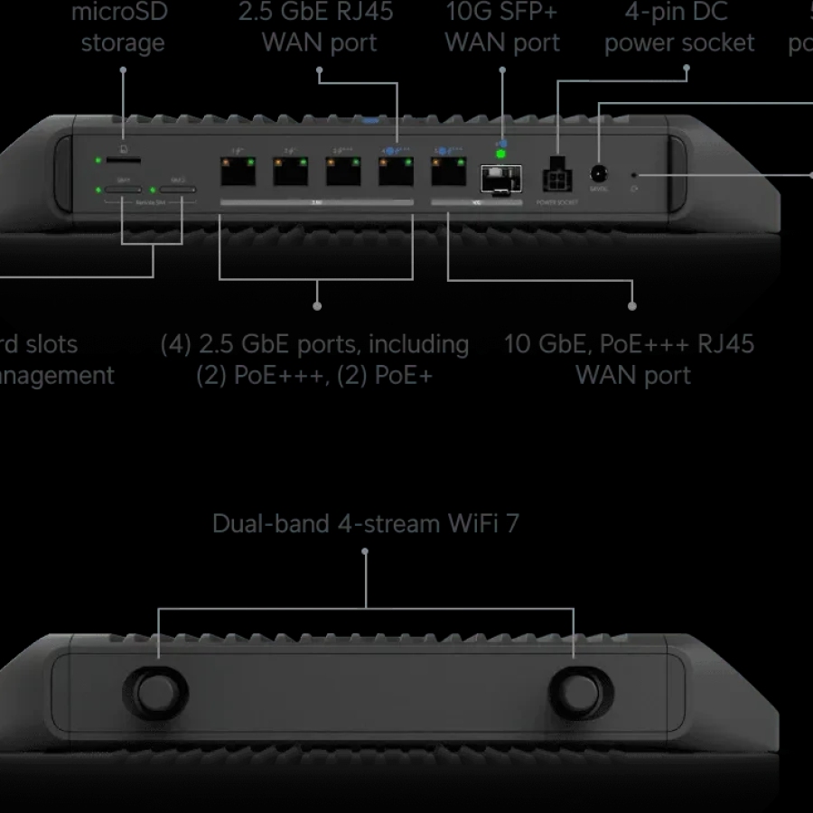 | Poort layout 2.5 GbE RJ45 | 4 (2 PoE+++, 2 PoE+) (2.5G/1G/100M) |